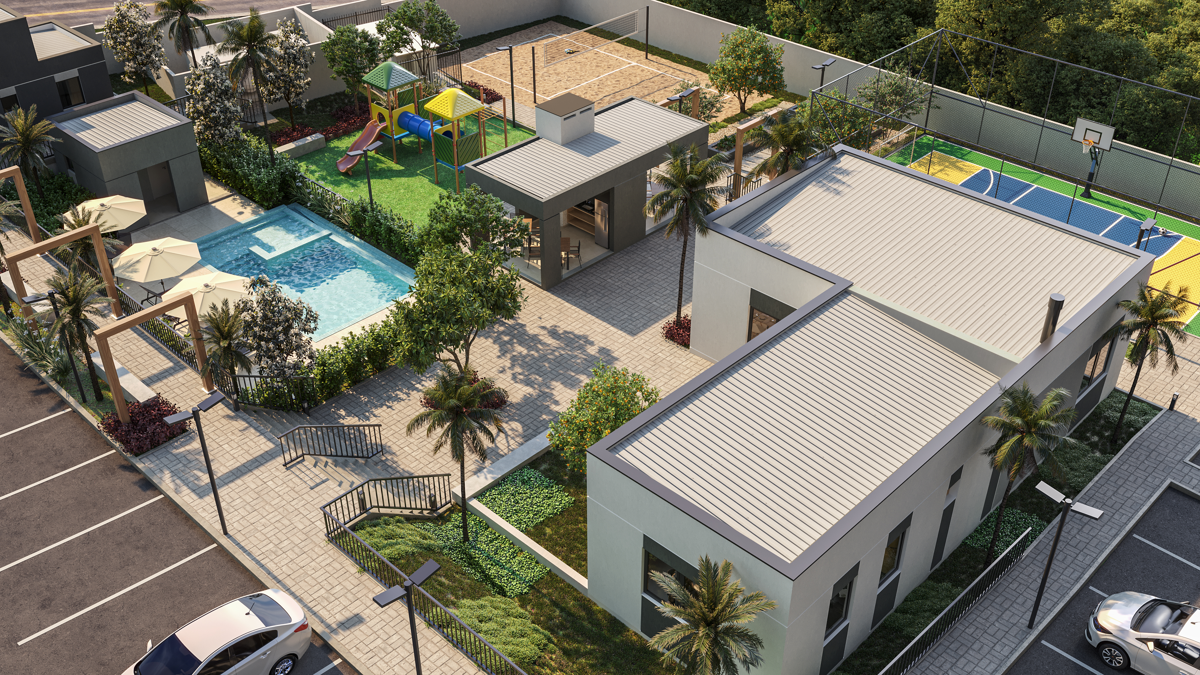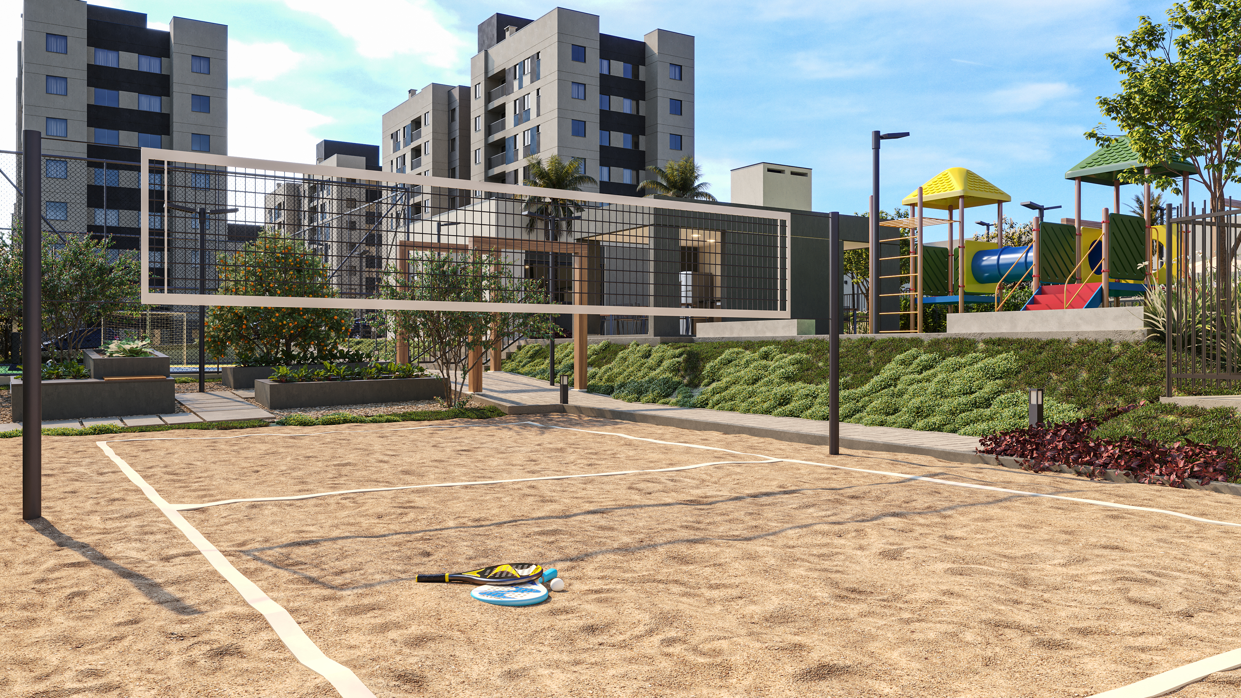 Lazer e tranquilidade em um só lugar: piscina, salão de festas, quadra esportiva, horta comunitária, quadra de beach tennis, playground e muito mais!